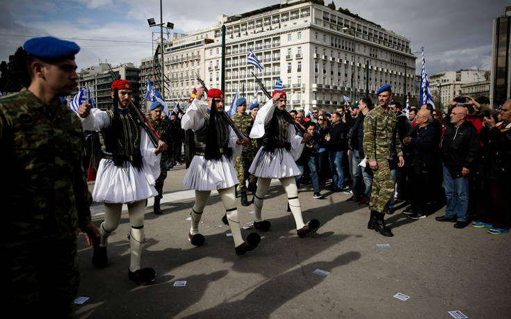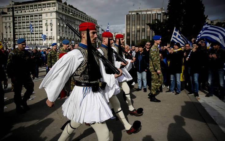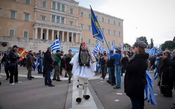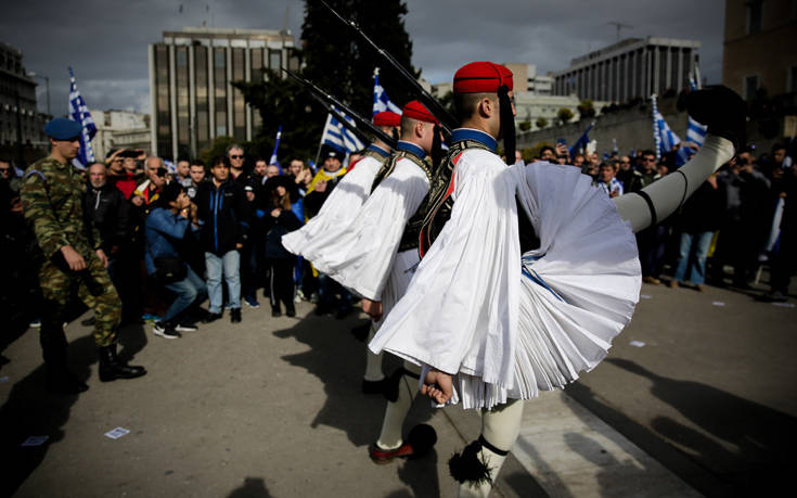 Οι διαδηλωτές που βρέθηκαν από νωρίς στο συλλαλητήριο στο Σύνταγμα για το Μακεδονικό έπεσαν πάνω στην αλλαγή φρουράς των Ευζώνων.