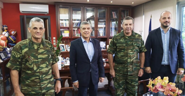 Η διαχρονική και ουσιαστική συνεργασία της Περιφέρειας Θεσσαλίας με τον Στρατό, επαναβεβαιώθηκε στη διάρκεια της συνάντησης που είχε σήμερα ο Περιφερειάρχης Κώστας Αγοραστός με τον Αρχηγό του Γενικού Επιτελείου Στρατού Αντιστράτηγο Χαράλαμπο Λαλούση και τον Διοικητή 1ης Στρατιάς Αντιστράτηγο Βασίλειο Παπαδόπουλο, παρουσία και του Αντιπεριφερειάρχη Νίκου Λιούπα.